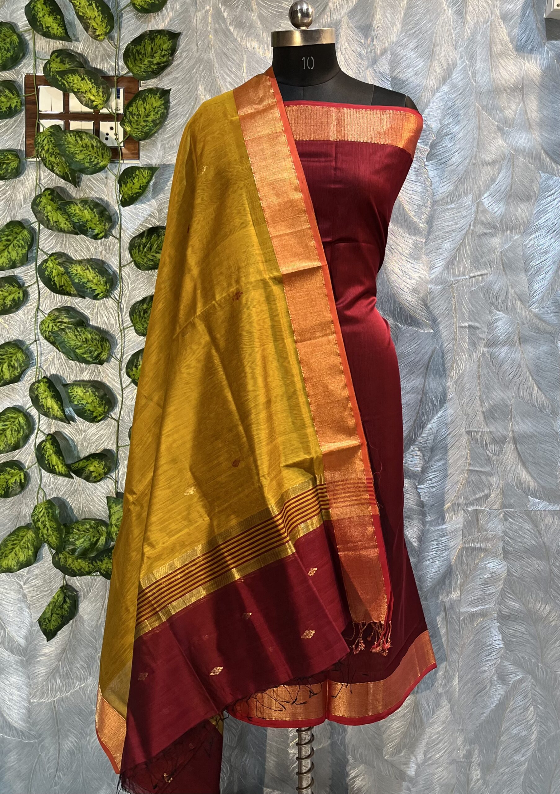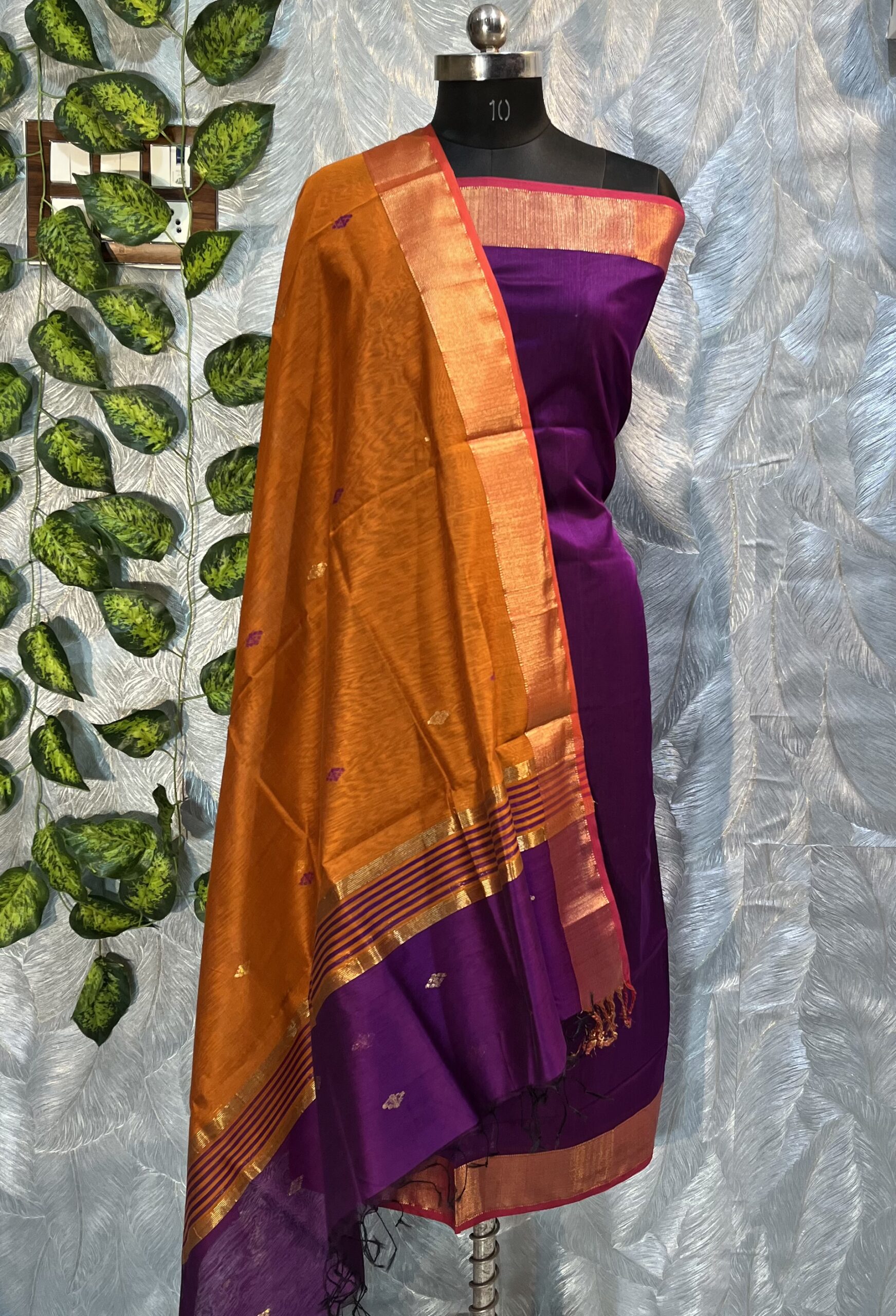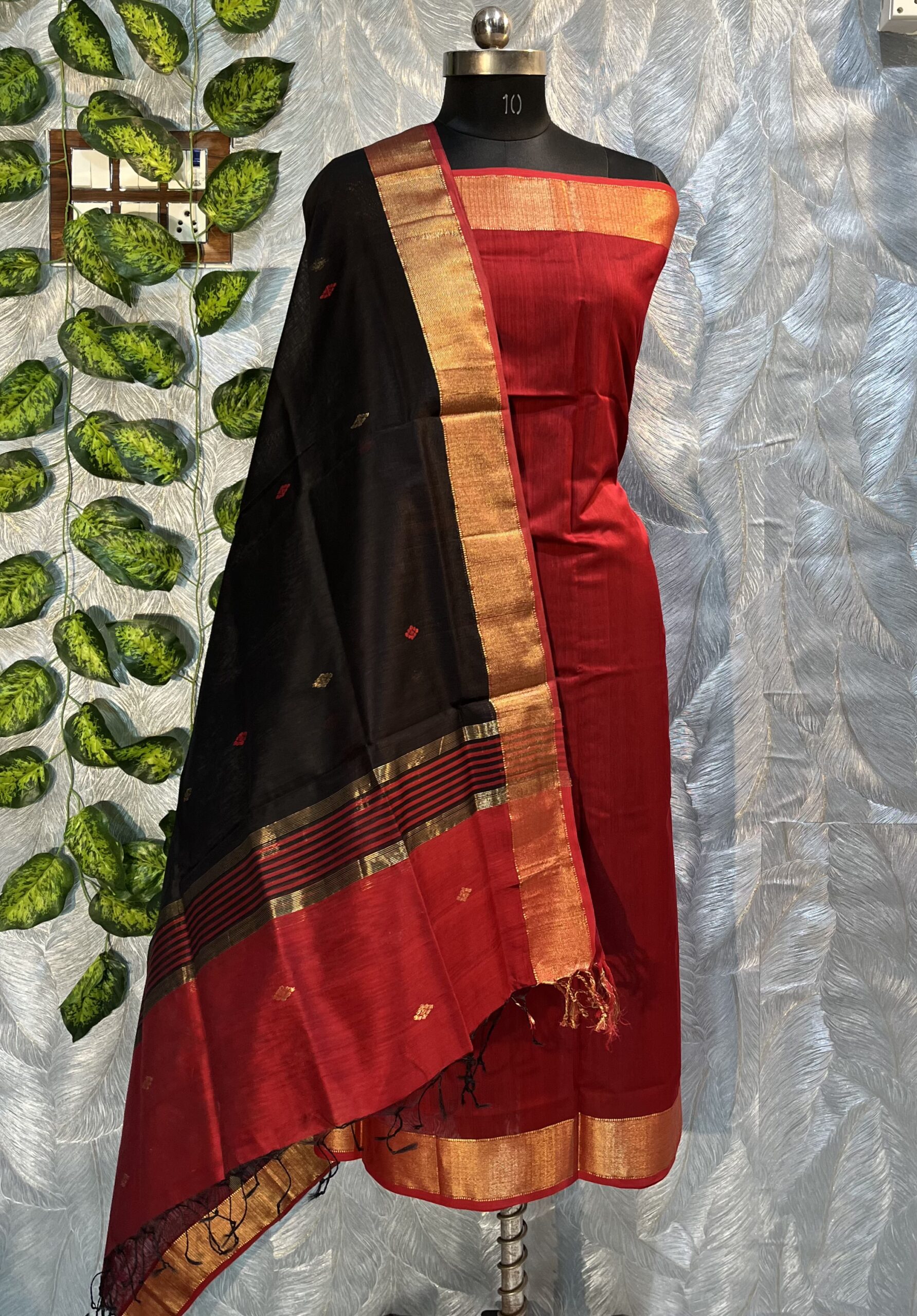 Maheshwari Diamond Buti Top & Dupatta Dress Material