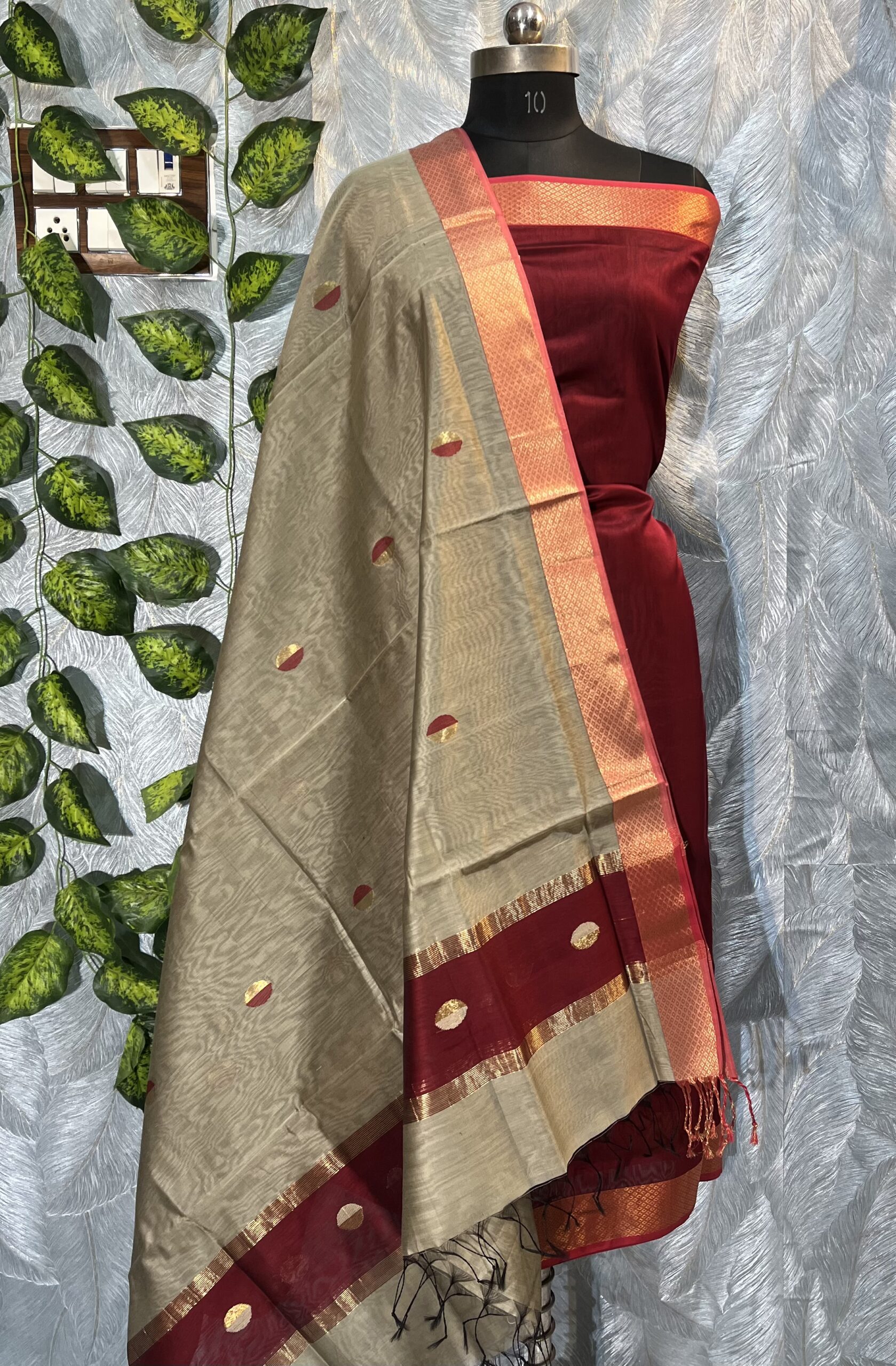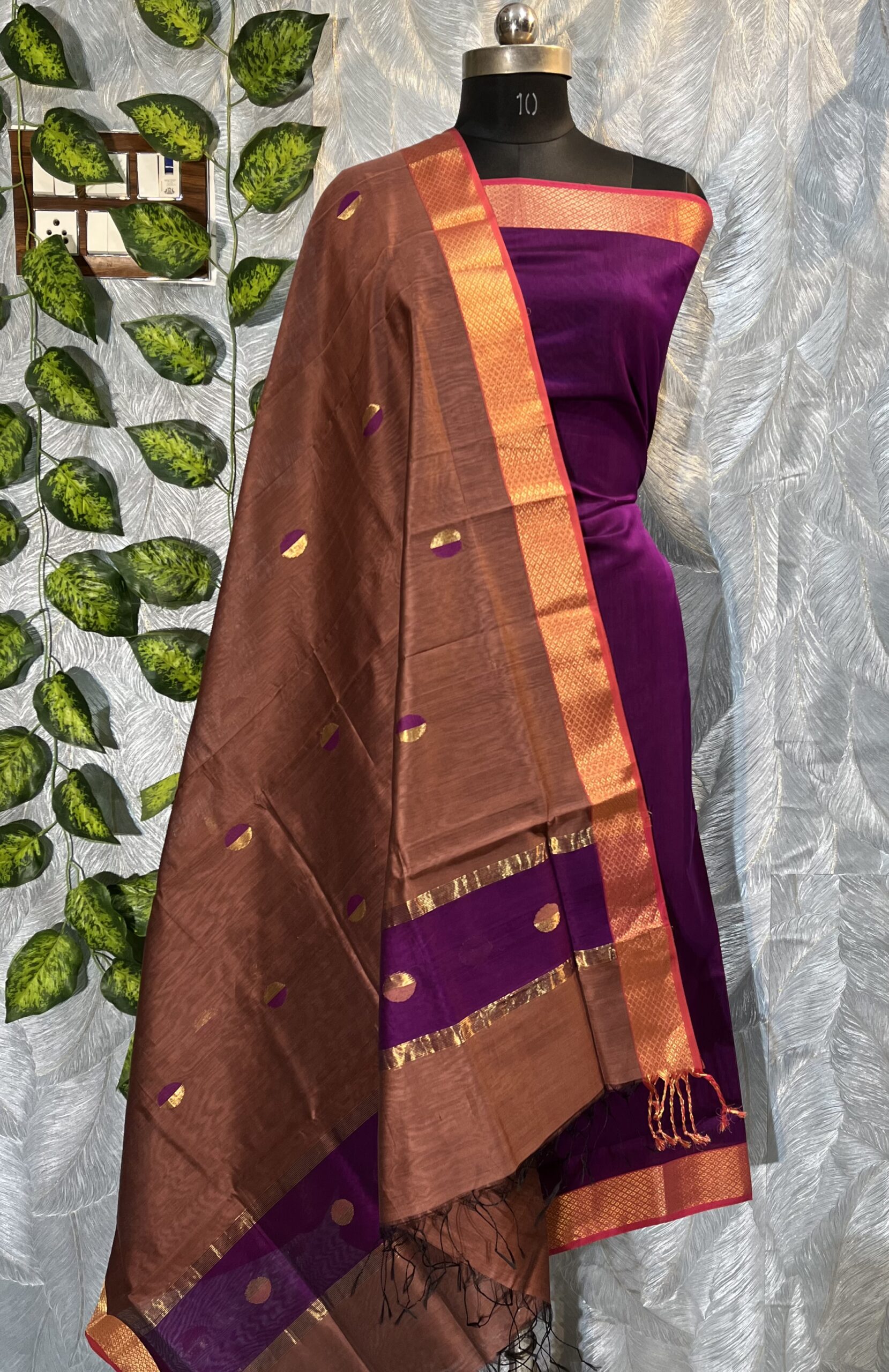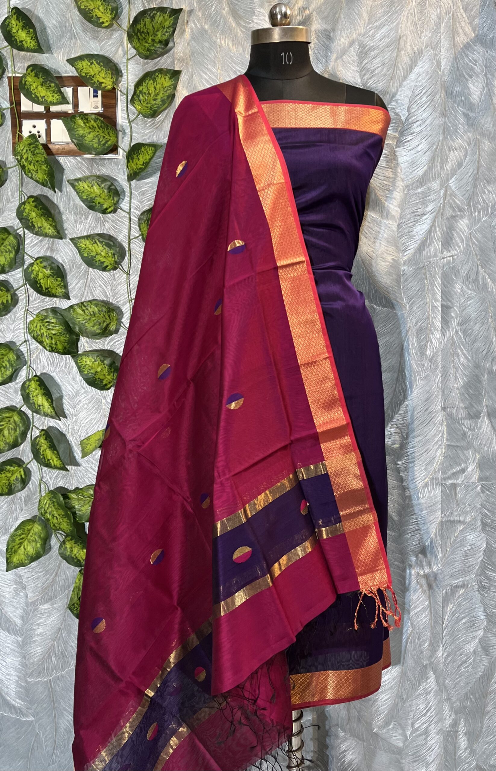 Maheshwari Dual Coin Buti Top & Dupatta Dress Material
