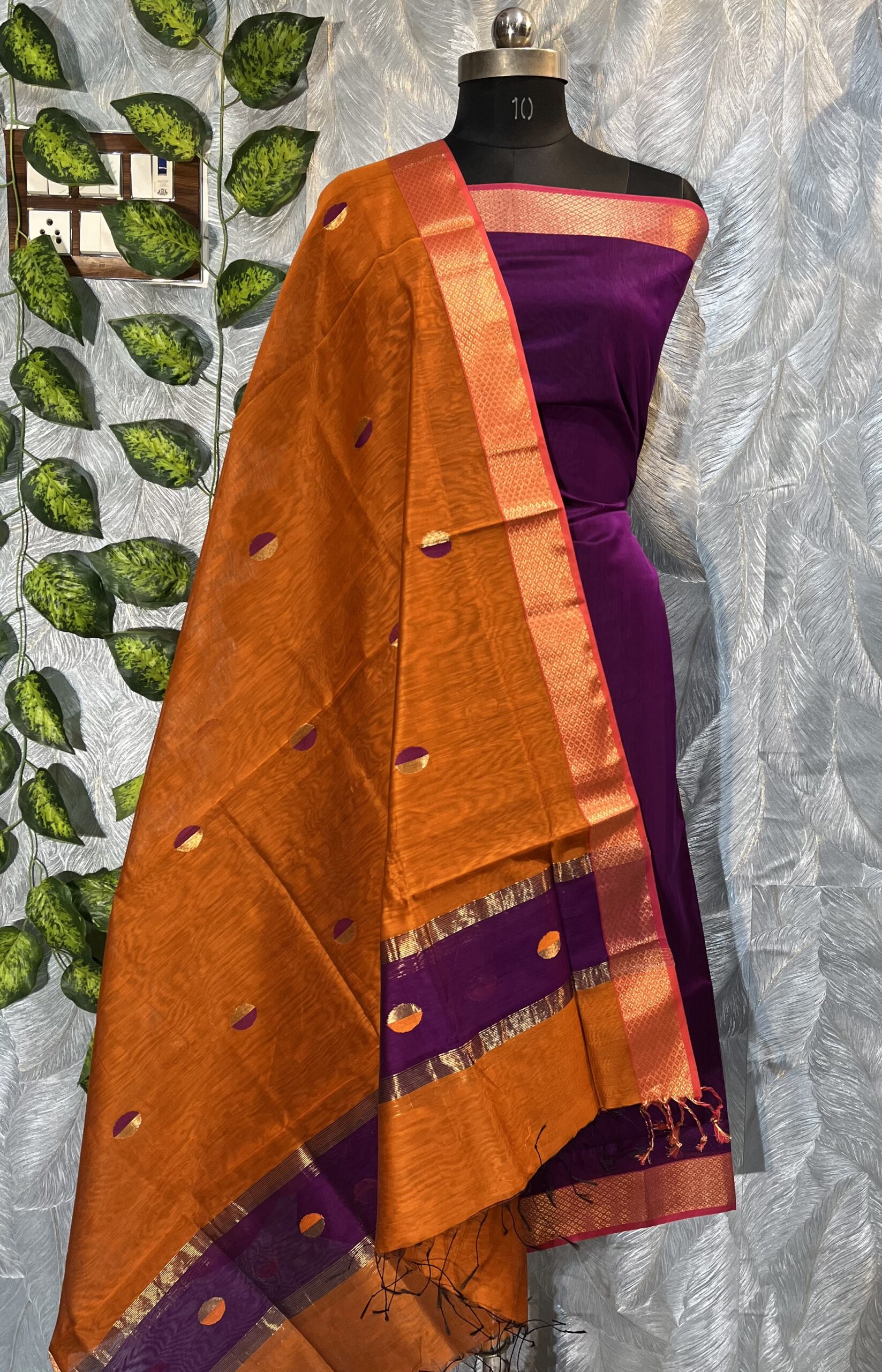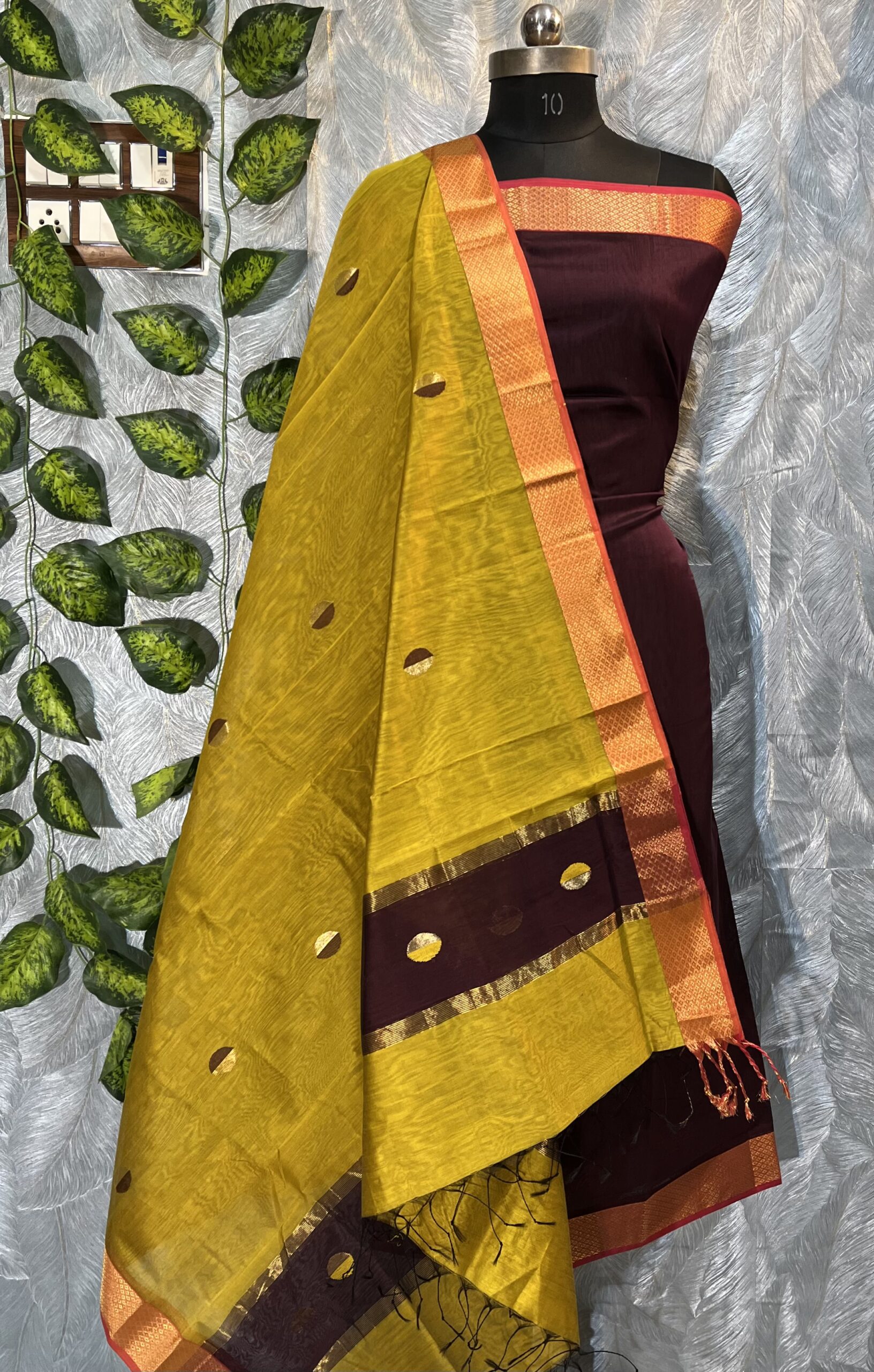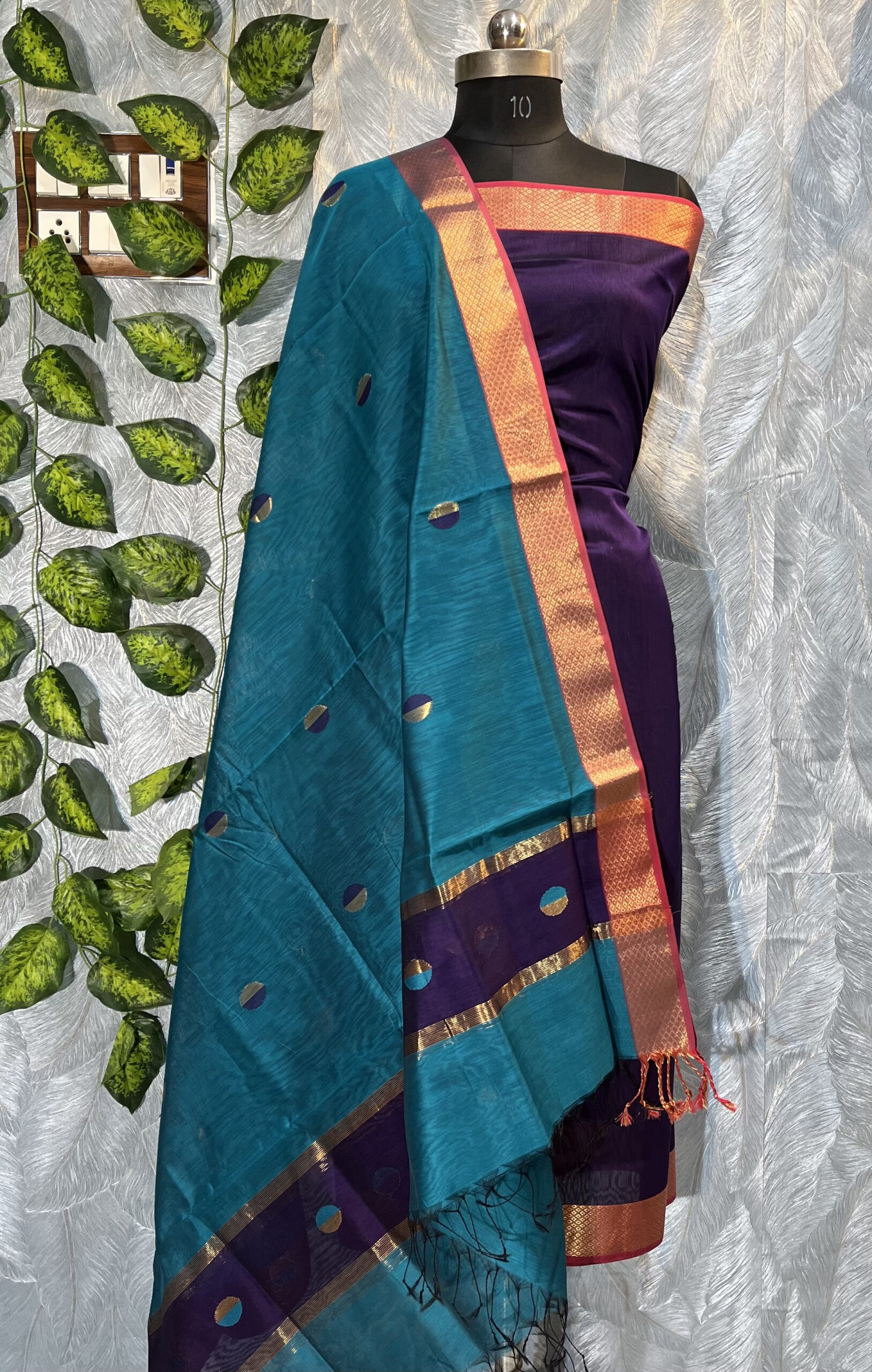 Maheshwari Dual Coin Buti Top & Dupatta Dress Material