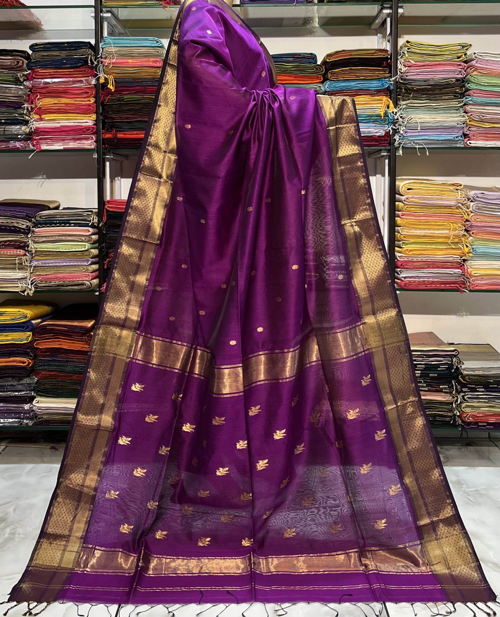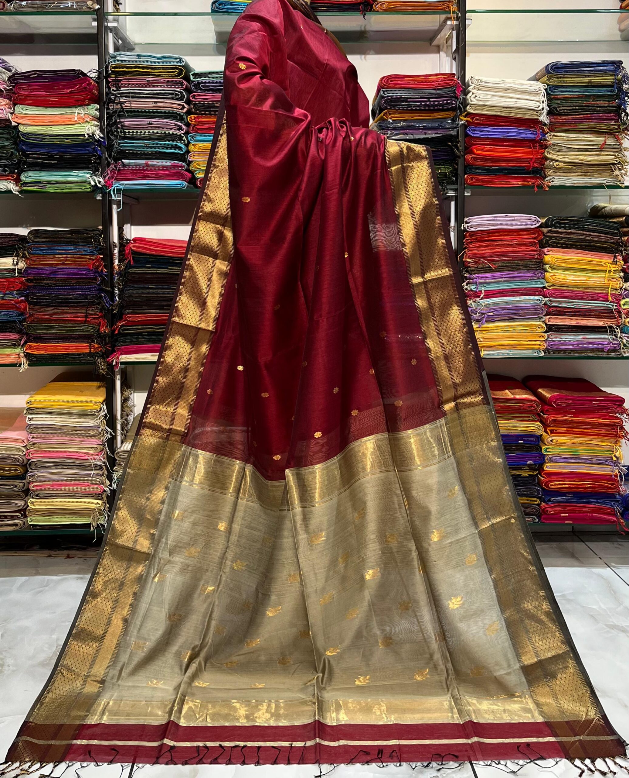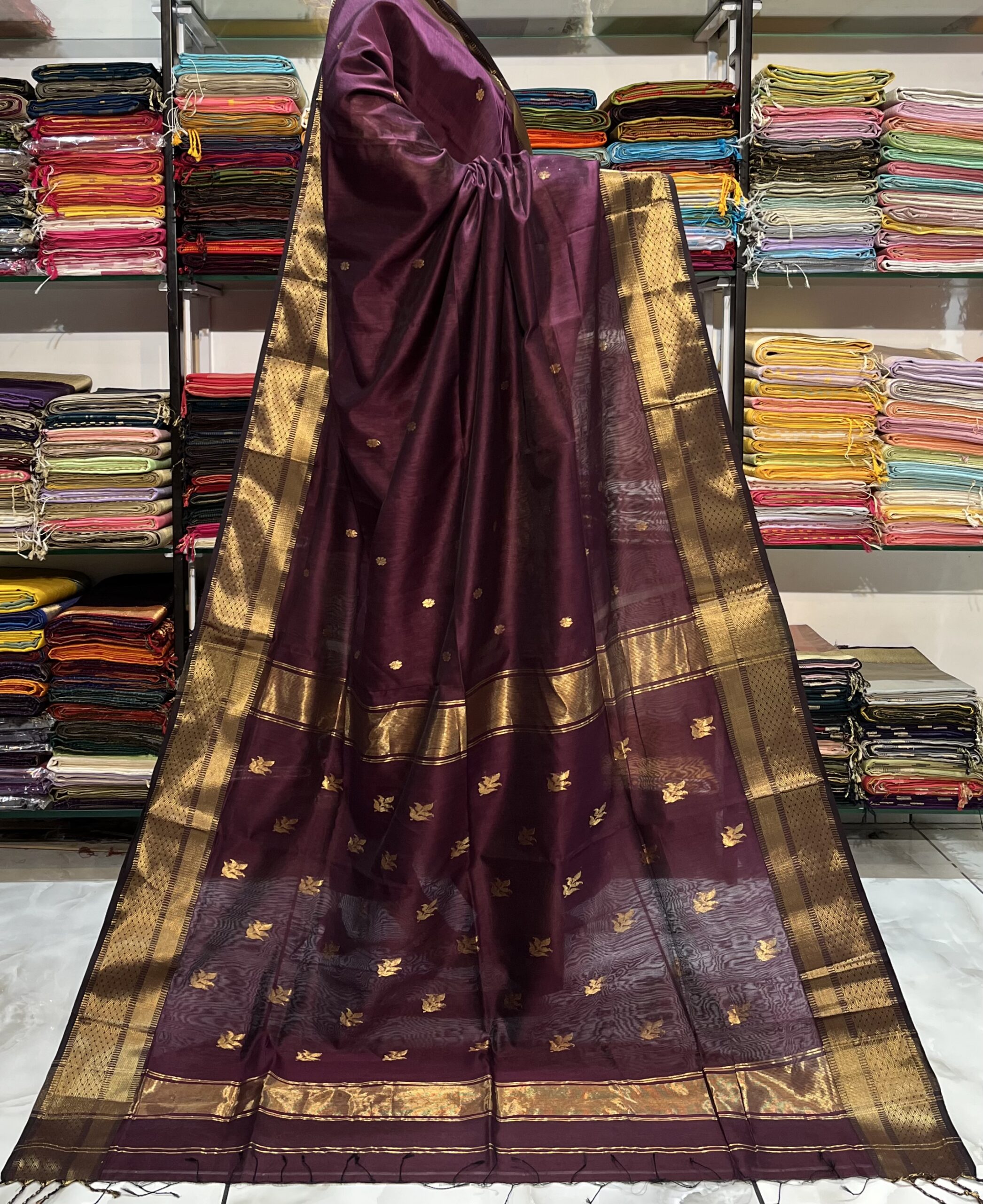 Be the first to review “Maheshwari Leaf Buti Pallu Saree”