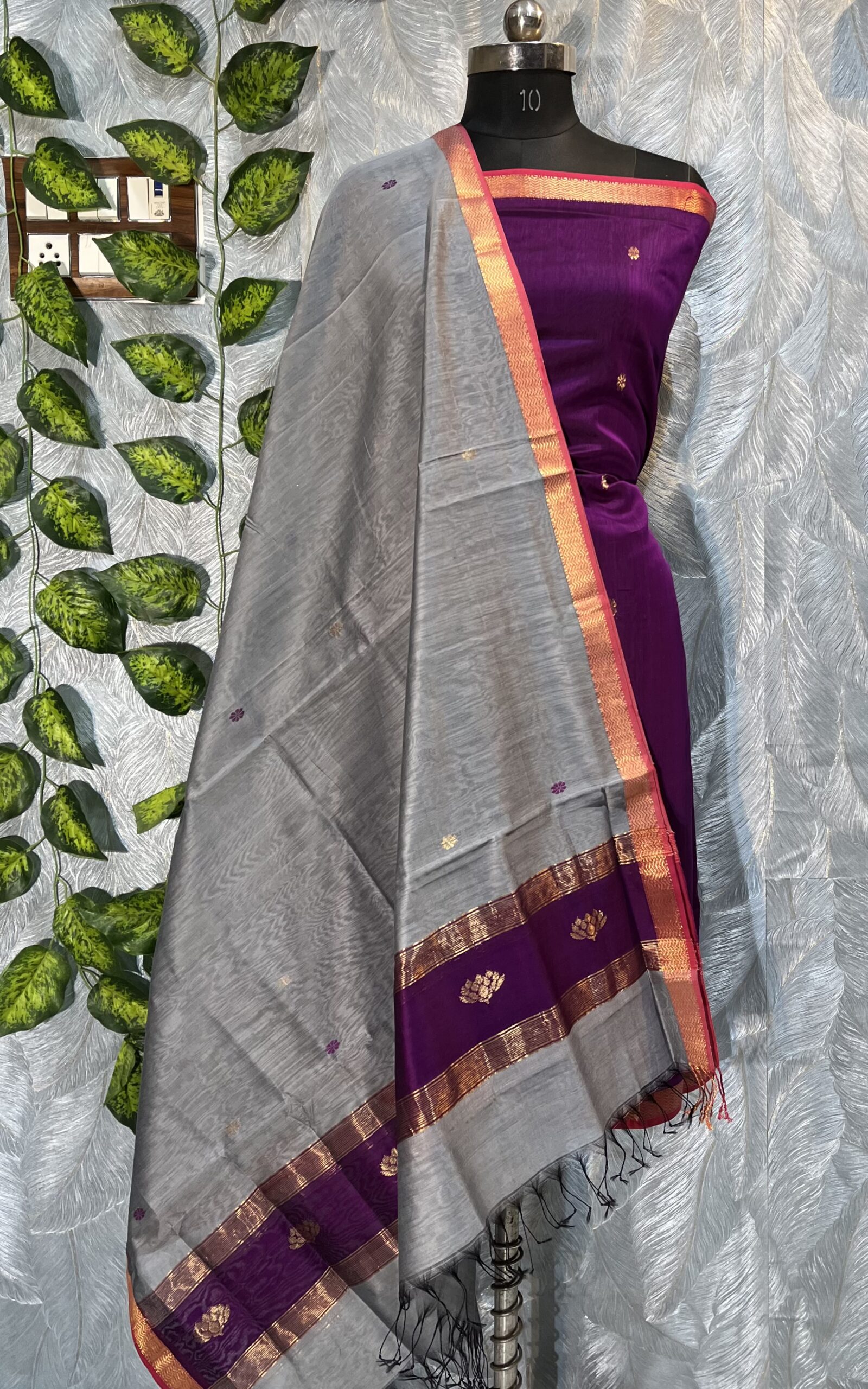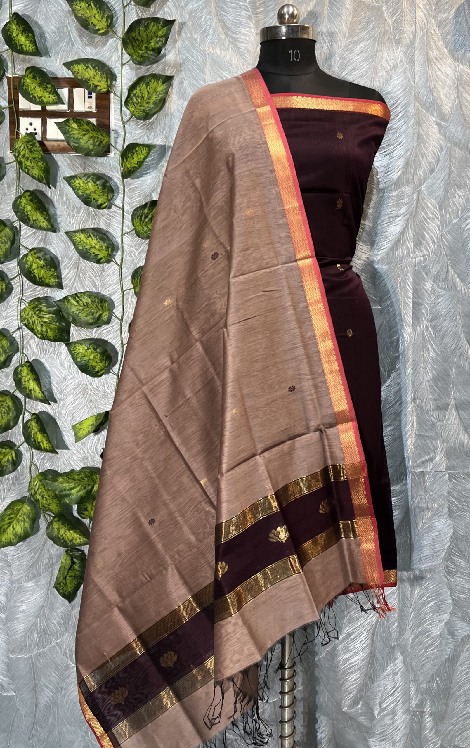 Maheshwari Lotus Buti Top & Dupatta Dress Material