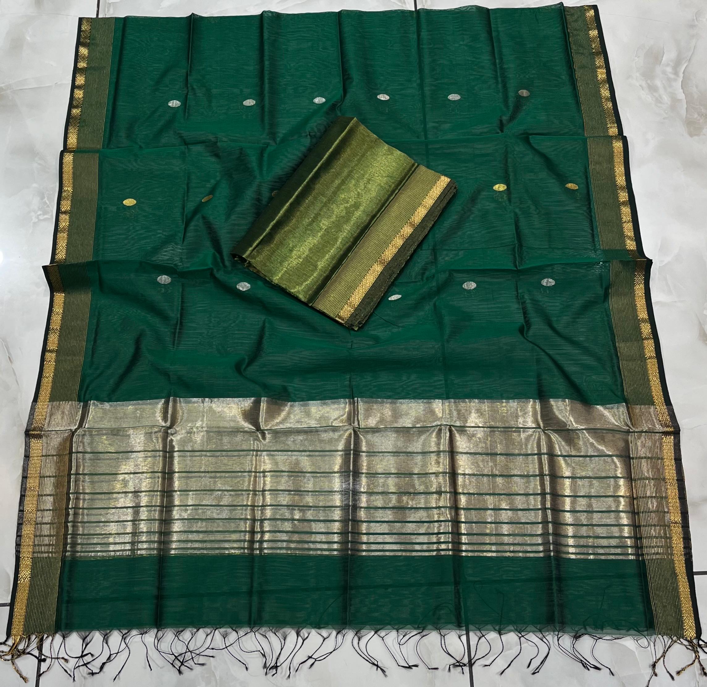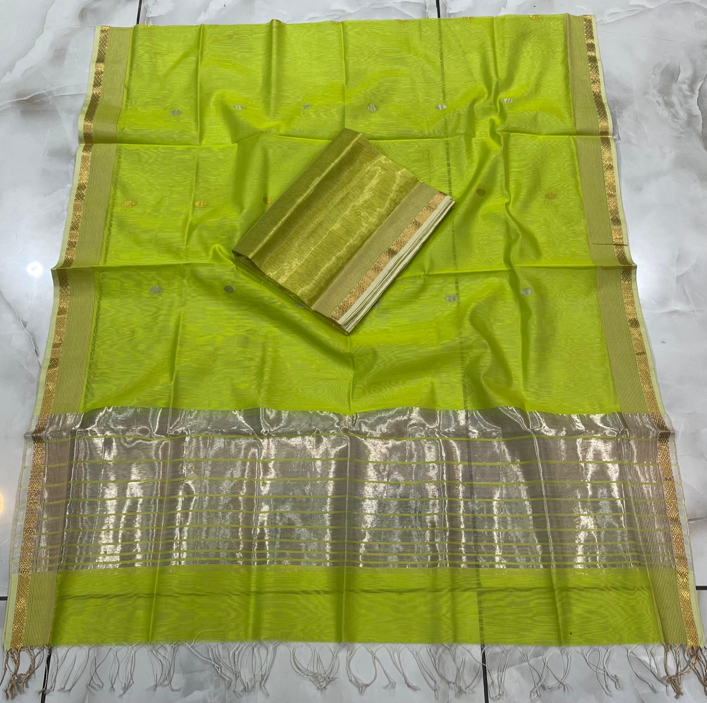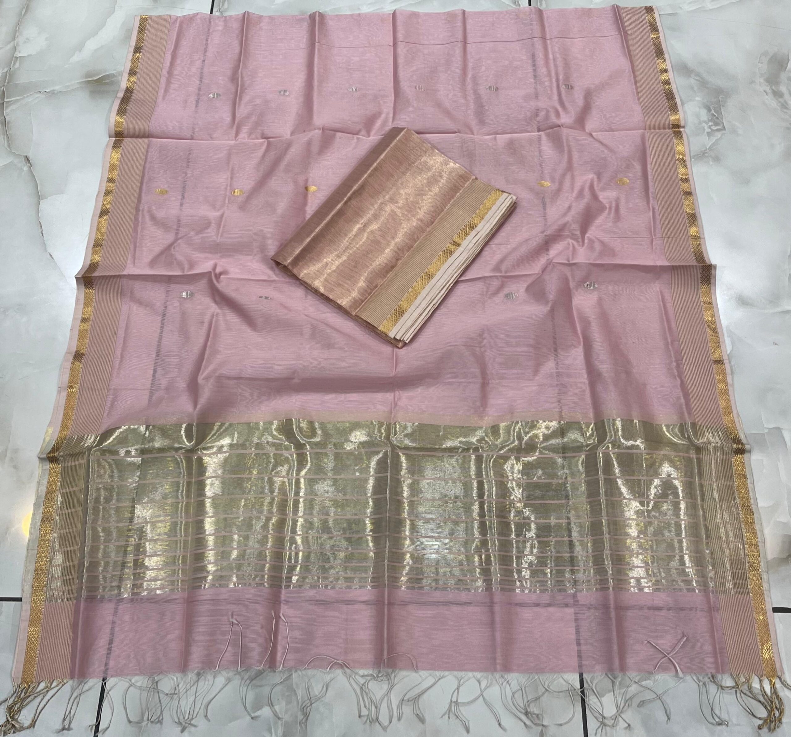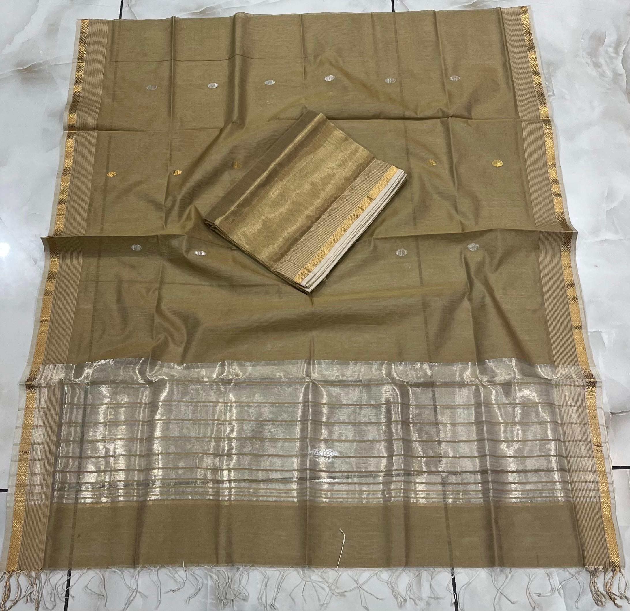 Maheshwari Silver Gold Coin Buti Top & Dupatta Dress Material